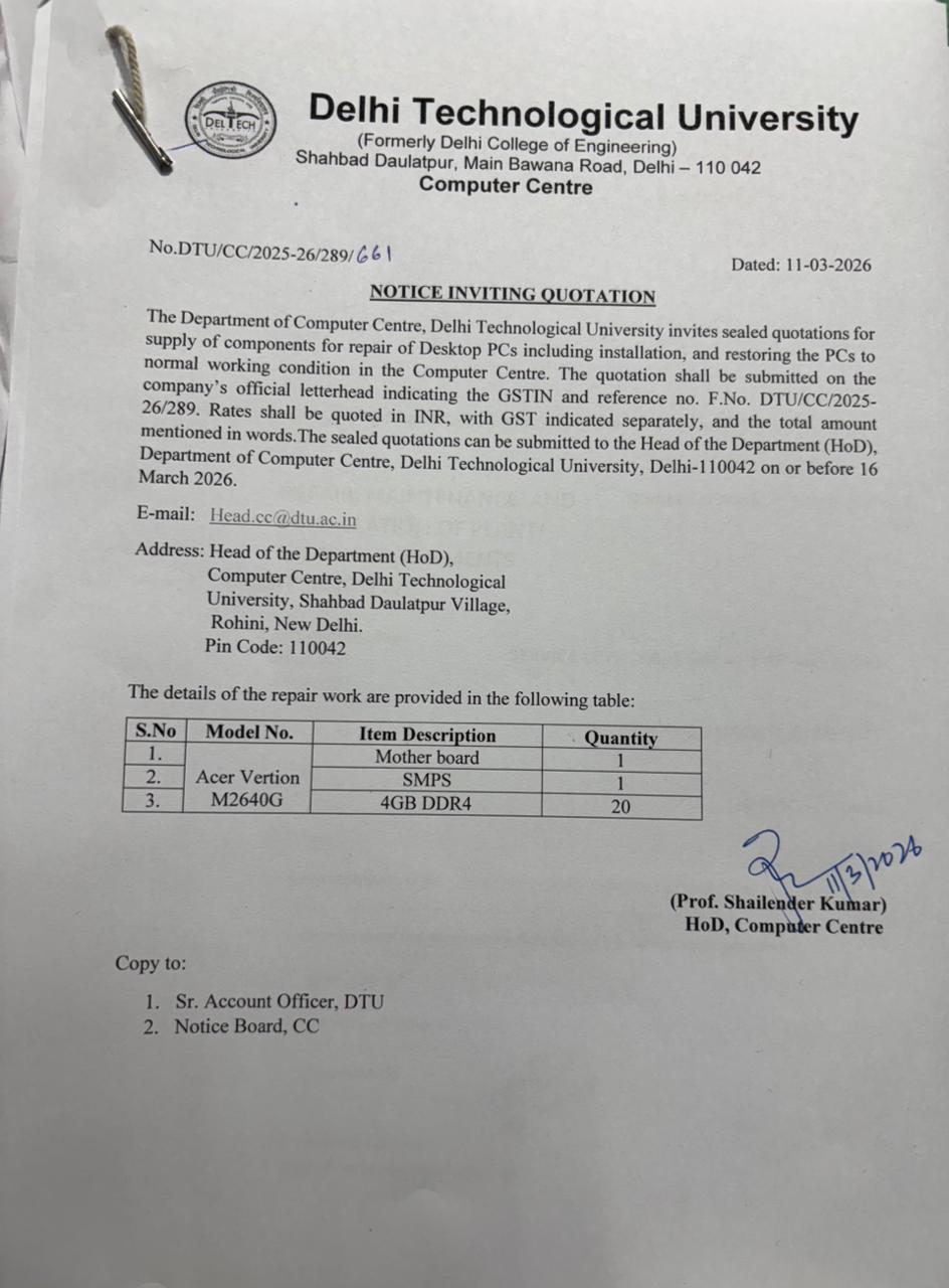 © 2014 - 2021 , Delhi Technological University , Shahbad Daulatpur, Main Bawana Road, DL - 42, IN | ( Best viewed in 1024X768 or above )